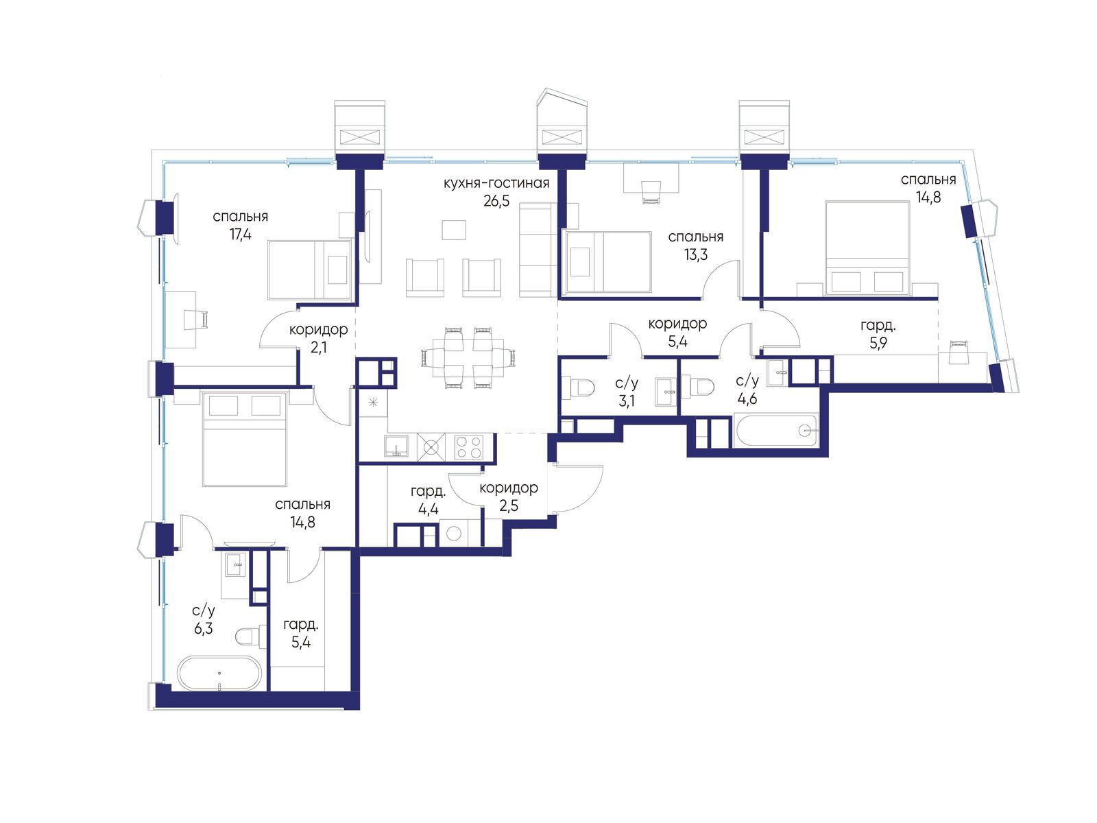 Продаётся 4-комн. квартира от застройщика: общая площадь 126.52 м², жилая 60.30 м², кухня 26.50 м², 19-й этаж, жилой квартал «Остров 14», корпус 6 (секция 1). Срок сдачи: 2 квартал 2029 года. 3 санузла (1 раздельный и 2 совмещенных). Остров.14 ДОХОДНЫЙ ДОМ – ЧАСТЬ ПРОЕКТА «ОСТРОВ», В 10 МИНУТАХ ОТ МОСКВА-СИТИ, В 15 МИНУТАХ ЕЗДЫ ОТ САДОВОГО КОЛЬЦА. Квартиры для сдачи в аренду Инвестиционный продукт для получения постоянного дохода Квартиры с отделкой и мебелью, и с управлением "под ключ" Постоянный доход для инвесторов, отельный сервис для арендаторов Востребованные для аренды планировки: студии, 1- и 2-комнатные квартиры 28-64 м2 Полная комплектация квартир: отделка, мебель, бытовая техника, кондиционеры Постоянный поток арендаторов – 10 минут от Москва-Сити, 5 минут от метро «Мневники», самодостаточная инфраструктура в квартале и собственная клубная инфраструктура в доме, спортивный, рекреационный и деловой кластеры на территории ОСТРОВА