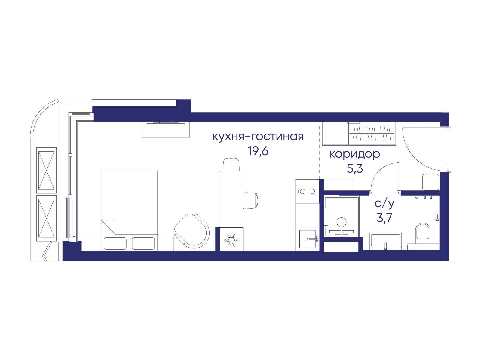 - Общая площадь 28.62 м²