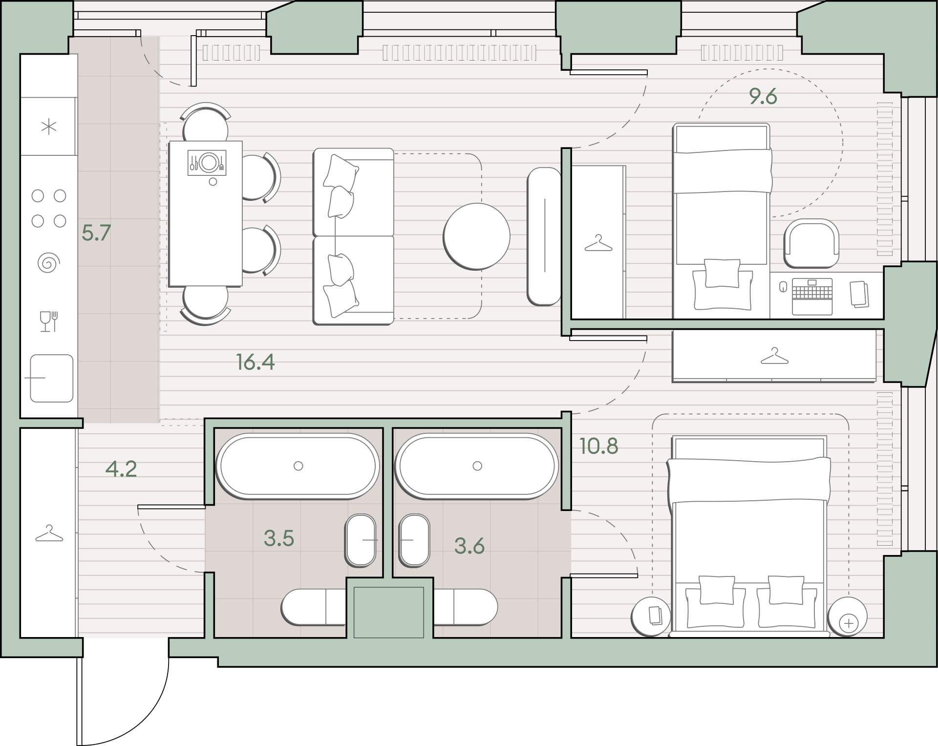 - Жилая площадь 36.8 м²
