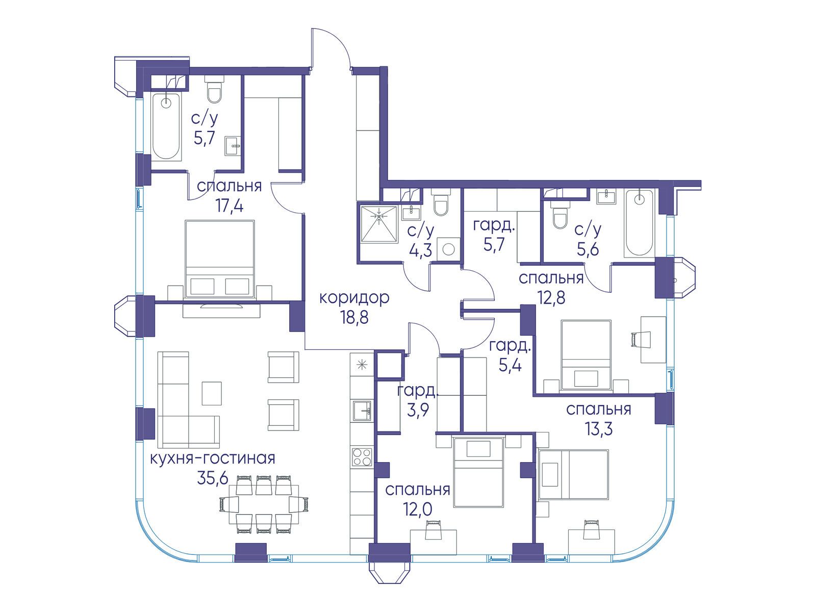 Квартира 4-комн., 140 м2, 9/17 этаж,