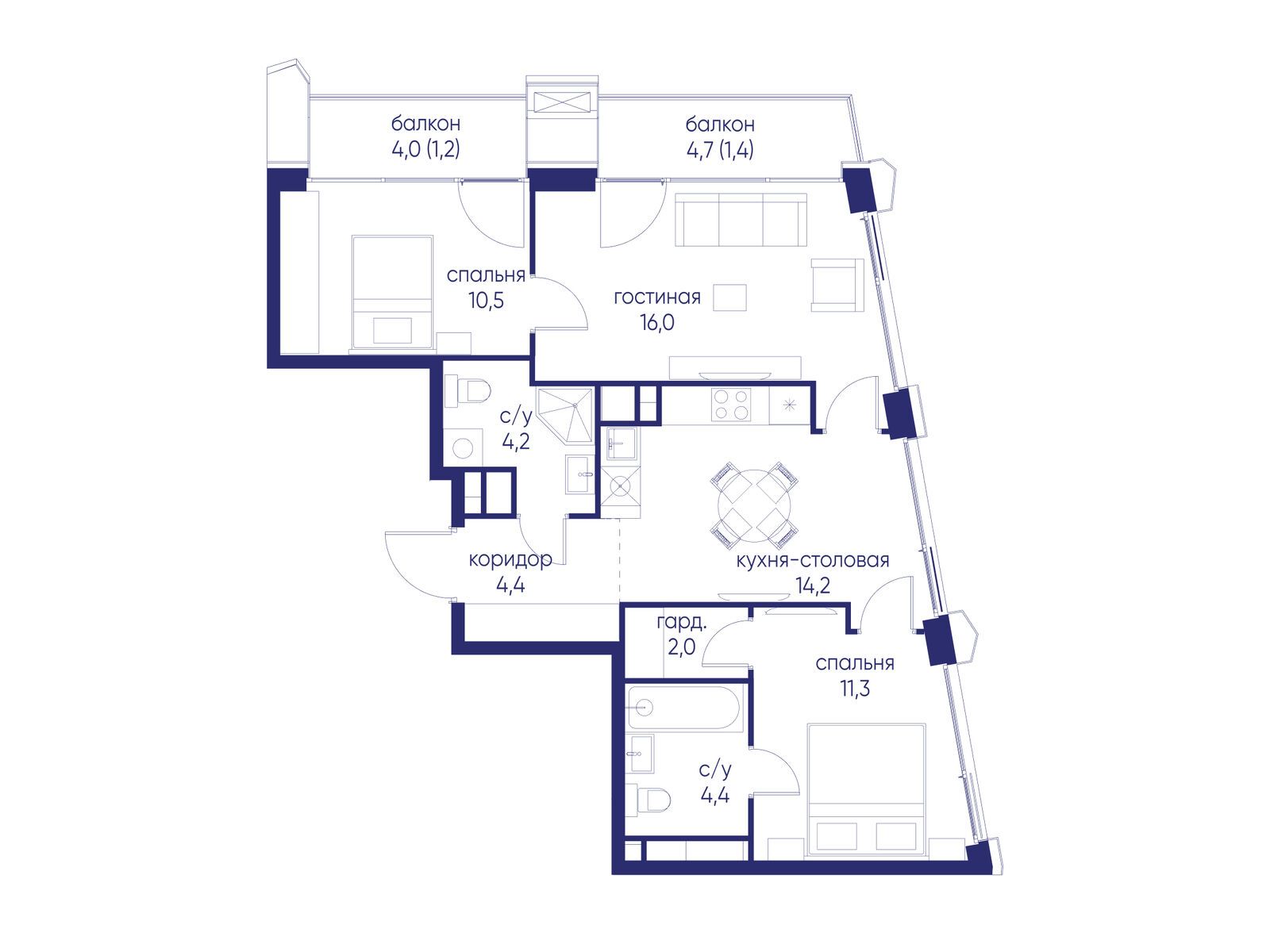 Продаётся 2-комн. квартира от застройщика: общая площадь 69.62 м², жилая 22.80 м², кухня 30.20 м², 22-й этаж, жилой квартал «Остров 14», корпус 6 (секция 1). Срок сдачи: 2 квартал 2029 года. 2 совмещенных санузла. Остров.14 – ЧАСТЬ ПРОЕКТА «ОСТРОВ», В 10 МИНУТАХ ОТ МОСКВА-СИТИ, В 15 МИНУТАХ ЕЗДЫ ОТ САДОВОГО КОЛЬЦА. Квартал расположен в северной части ОСТРОВА, у реки. Близость воды, благоустроенная набережная и курортная инфраструктура создают здесь отпускное настроение. Из окон квартир, с балконов и террас открываются великолепные виды на реку и московские пейзажи. Для семей с детьми предусмотрен дополнительный бонус: детский сад и школа в двух шагах от дома.