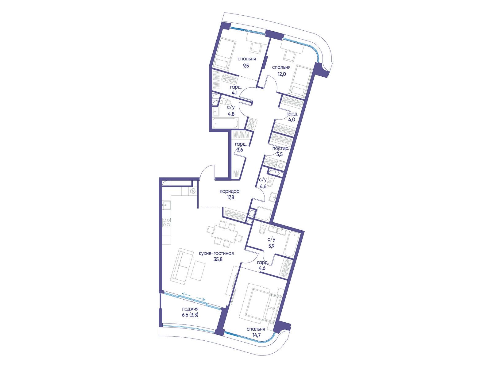 Продаётся трехкомнатная квартира от застройщика: общая площадь 128.22 м², жилая 36.20 м², кухня 35.80 м², 15, жилой квартал «Остров 7», корпус 2 (7 квартал) (секция 2). срок сдачи: 4-кв. 2025. , 3 санузла: 3 совмещенных. В жилой зоне 2 больших окна на одну сторону, хорошая инсоляция. Позвоните сейчас и забронируйте квартиру! Купите квартиру в доме у прибрежного парка, в квартале ОСТРОВ.7. Это семь корпусов премиум- и бизнес-класса в одном из лучших мест ОСТРОВА - между бульваром и парком, поблизости от реки. Стильные корпуса имеют узнаваемый вид благодаря бионической пластике фасадов, приподнятых над землей. Для жителей предусмотрены детский клуб, фитнес-рум, коворкинг, переговорные, лаунжи. На крышах устроены видовые общественные пространства с зонами для отдыха и спорта. Двор расположен на двух уровнях: нижний ландшафтный парк и верхняя городская терраса. ОСТРОВ.7 - часть жилого комплекса на западе Москвы, в 15 минутах езды от центра. Это настоящий заповедник посреди большого города, в окружении реки и 650 га заповедников. Здесь все необходимое находится по соседству: от детского сада до супермаркета, от фитнес-зала до серфинг-центра. На территории созданы все условия для отдыха и общения: клубная инфраструктура в домах и дворы-парки, набережные и променады, маршруты для спортсменов, детей и возрастных жителей. В нескольких минутах ходьбы расположена станция метро "Терехово" БКЛ. На автомобиле - 10 минут до Москва-Сити и 15 минут до Садового кольца.