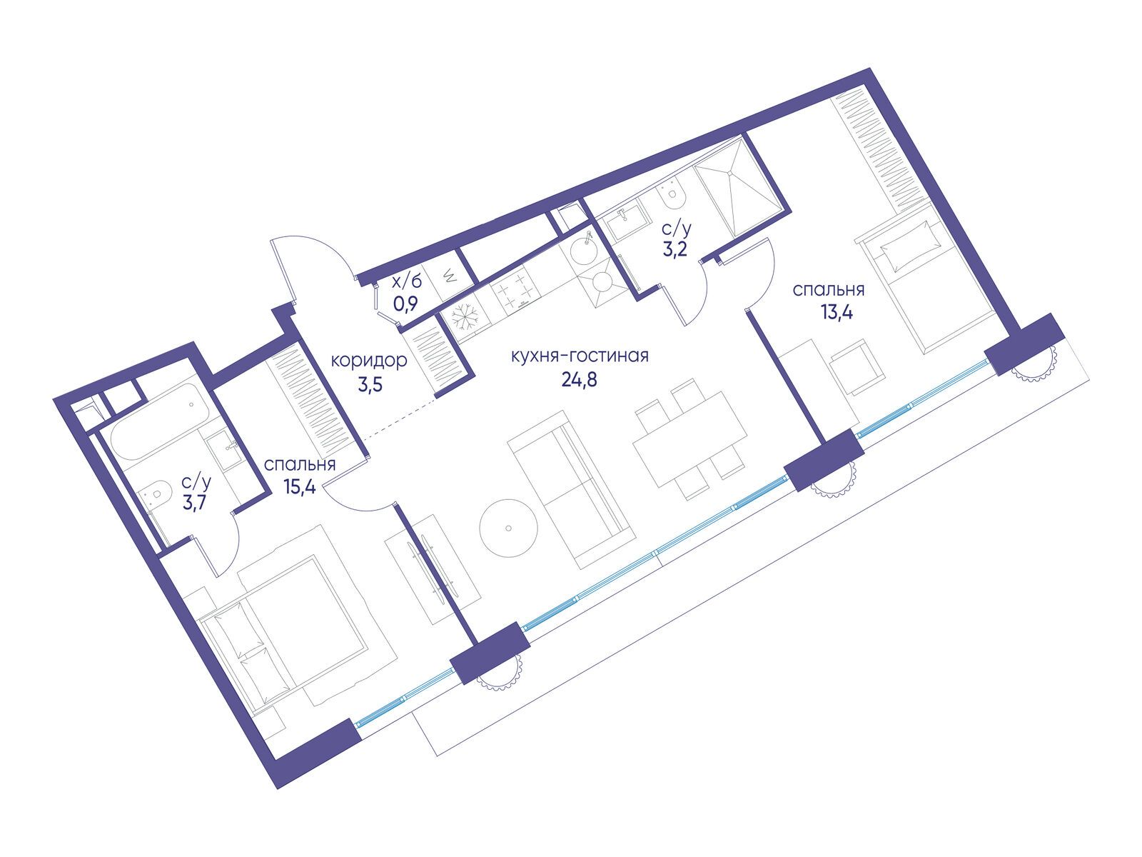 - Площадь кухни 24.8 м²